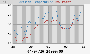 This week's max: 79.9°F at 16:31:00 (Saturday)